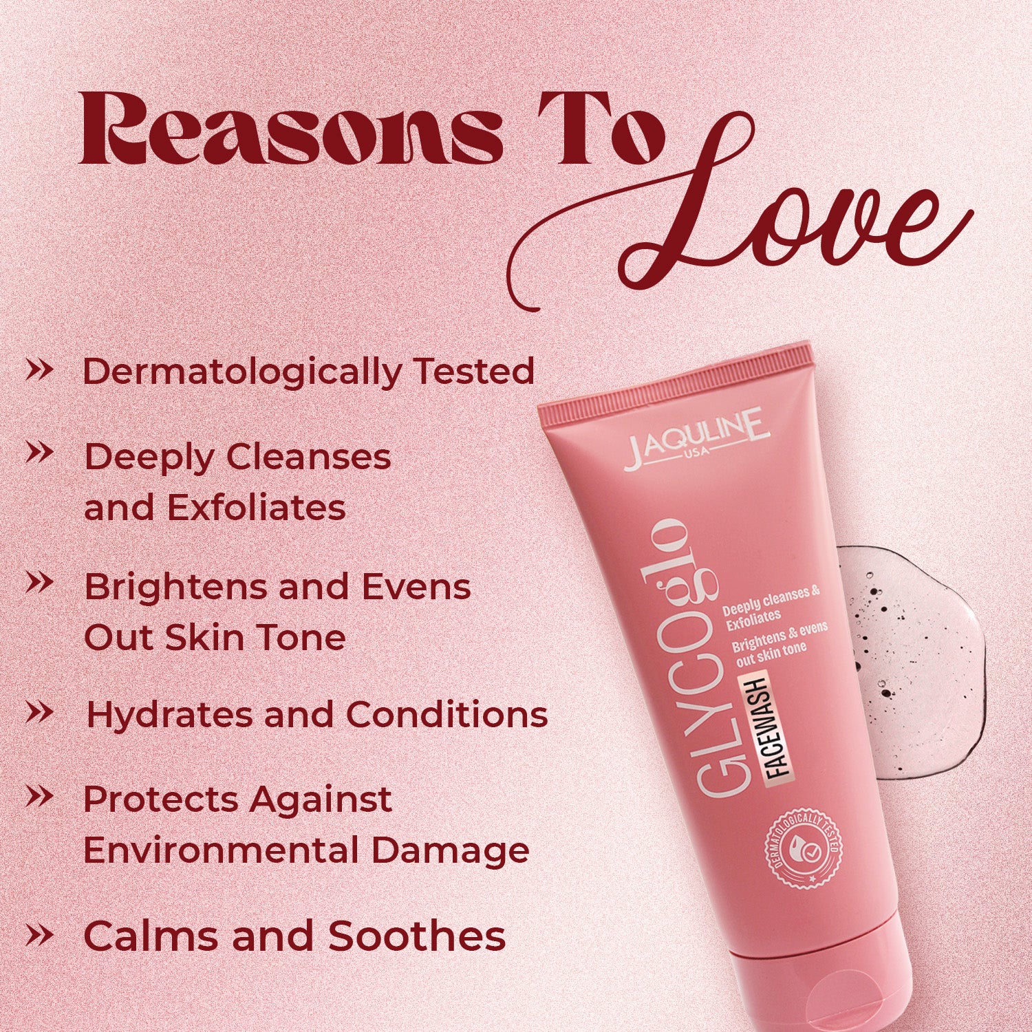 The Glycoglo Facewash is a refreshing, gentle cleanser designed to cleanse, exfoliate and brighten the skin in one easy step. With the power of Glycolic Acid and Niacinamide, it helps remove impurities, dead skin cells, and excess oil while boosting skin clarity and radiance. Enriched with soothing and nourishing botanicals, this face wash leaves your skin feeling clean, smooth and hydrated.